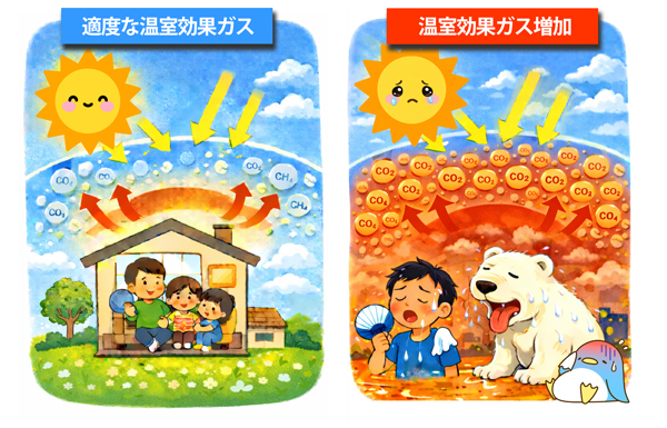地球の気温は、本来、太陽から受け取るエネルギーと宇宙へ放出する熱エネルギーの均衡によって保たれています。