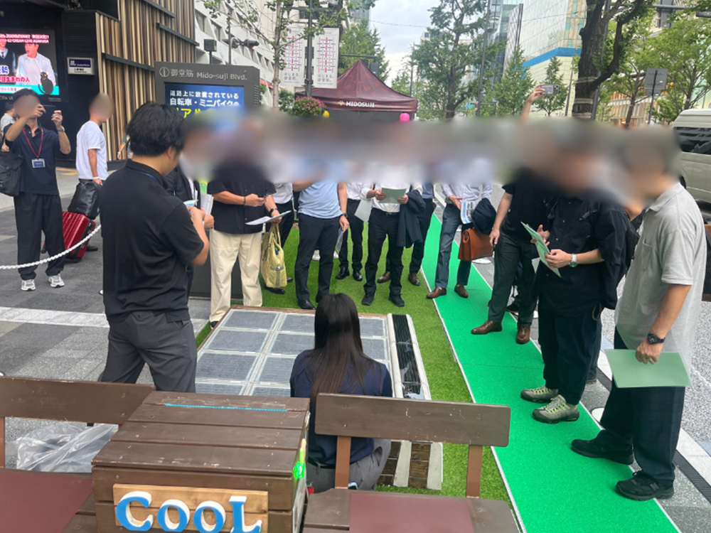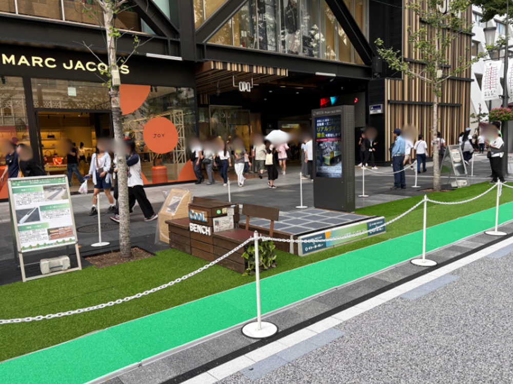 今回の「With 御堂筋」では、「みち」から未来を体験できる新たな取り組みとして、様々な技術が展示され、弊社は縁石を有効活用し公園での太陽光発電を実現する「ソーラー縁石システム」、路面を有効活用し太陽光発電を実現する「路面ソーラー」を展示いたしました。